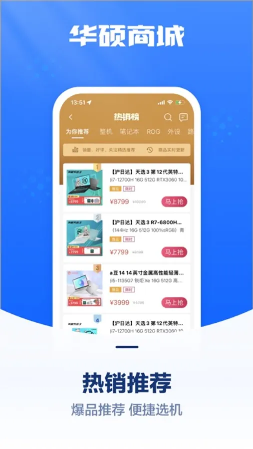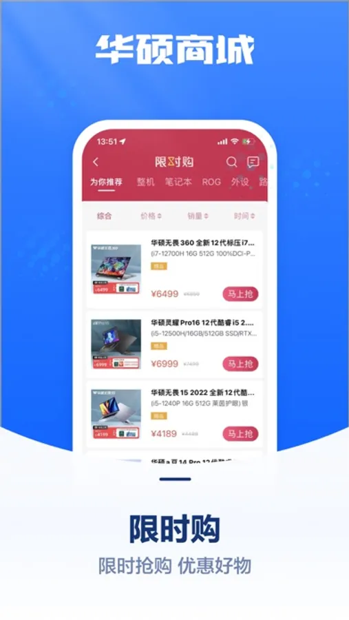 华硕商城官方APP,旨在为用户带来更好、更高品质的产品、服务和购物体验。来华硕商城购笔记本晒单享一年意外险*!你想要的ROG游戏本、实力轻薄本、DIY高能组件尽在华硕商城!正品有保证!