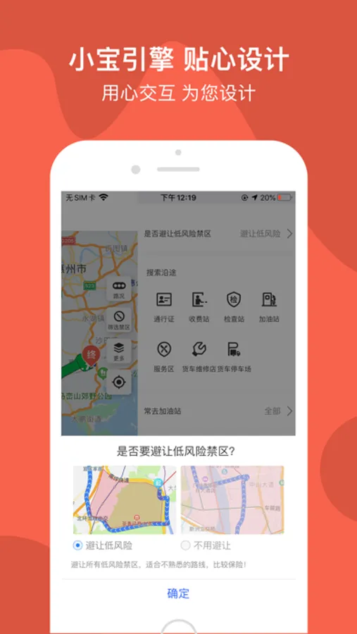 货车宝货车导航,根据大数据限行限高限宽信息,为你的货车精准定位,提供路况信息准确导航,装货拉货无烦恼!