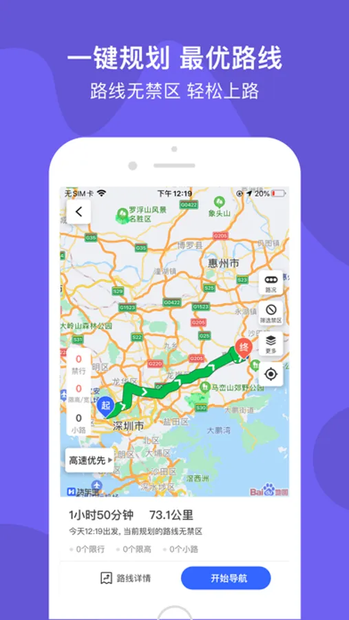 3.禁区查询:一键查询目的地禁区,不再领罚单;