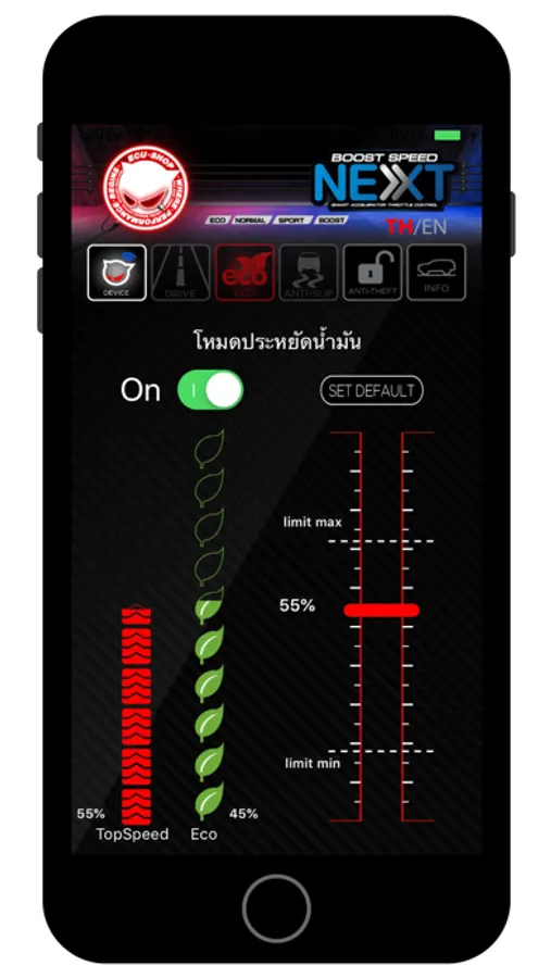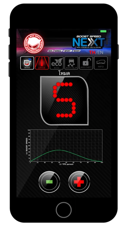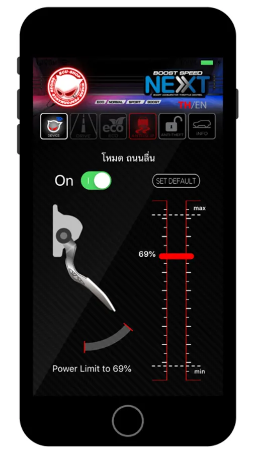 Boost Speed Next App for adjusting the mode of boost speed next. Can adjust the Eco mode. Can adjust the Anti-slip mode. And can set password to turn on the anti-theft mode.
