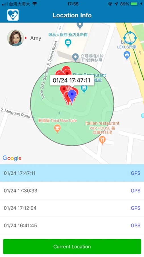 Through Status Alerts, you'll receive an notification when the static heart rate, deep sleep heart rate, deep sleep duration, steps and aerobic exercise duration of your cared ones have exceeded the range configured, which keeps you updated on the health and activity status of your cared ones easily. In addition, the Location Info of i-CareU Life provides a map that allows you to check the history data of your cared ones in two days, in case of any emergency occasion when you need to look up the location of your care ones.