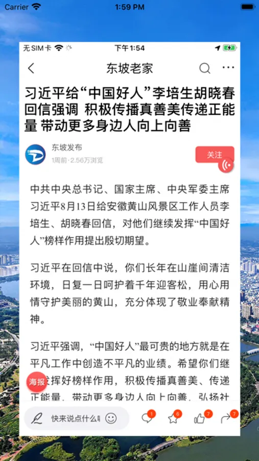 这是一款东坡人自己的APP。在这里,您可以了解到东坡的方方面面;在这里,您可以用评论、图片、小视频来表达自我;在这里,你可以和你的好友即时聊天互动;在这里,你可以观看东坡的电视、电台等本地节目;在这里,您还可以足不出户地办理各类政务服务。走进东坡、了解东坡、爱上东坡,这一个APP就足够了!!!