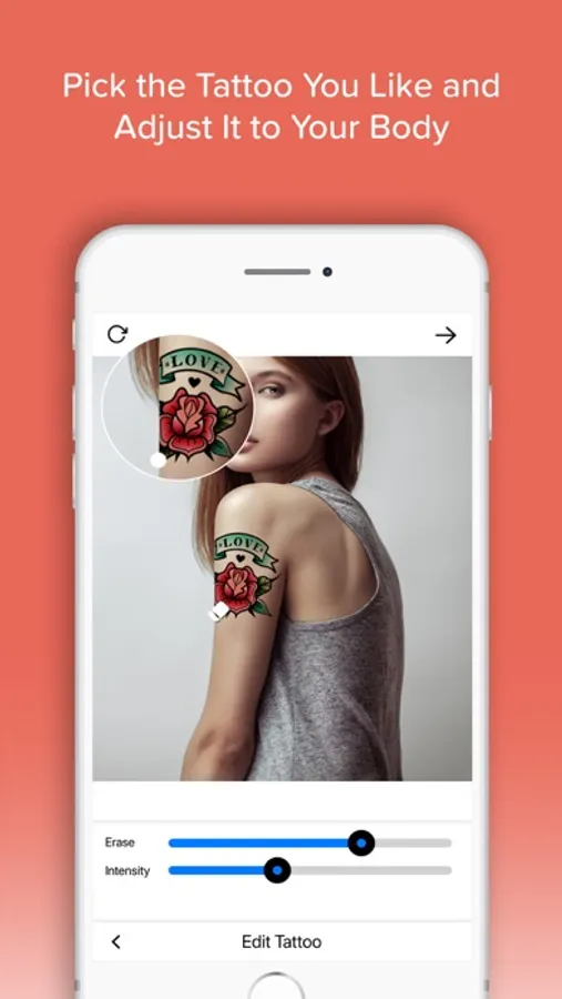 - Selection from hundreds of tattoo styles with ability to fine adjust to any type of body,