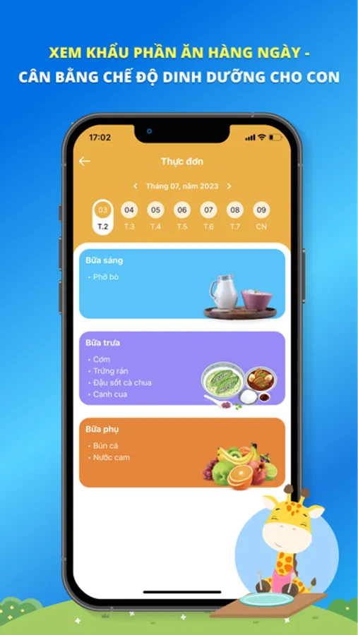 - Xem thực đơn, theo dõi bữa ăn của con