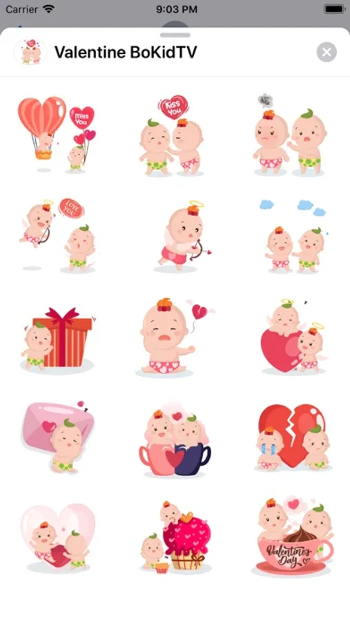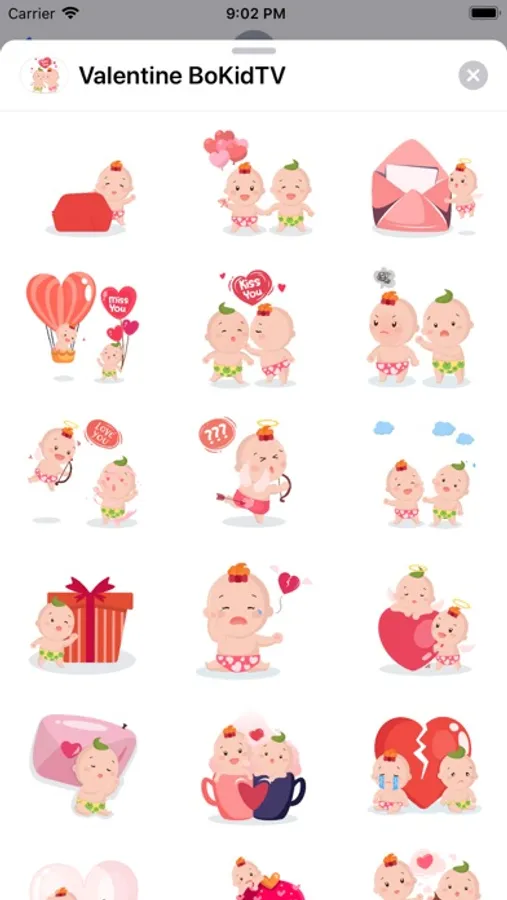 Valentine BoKidTV Funny Sticker (ANIMATED) to help you make your chats in messengers even funnier with many subjects : gift, card and Valentine Greetings
