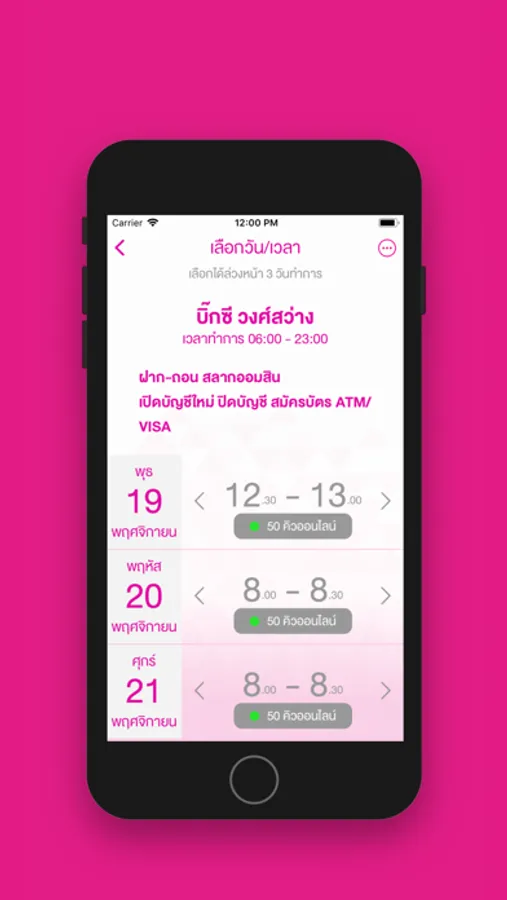- นัดหมายล่วงหน้า ตามช่วงเวลา