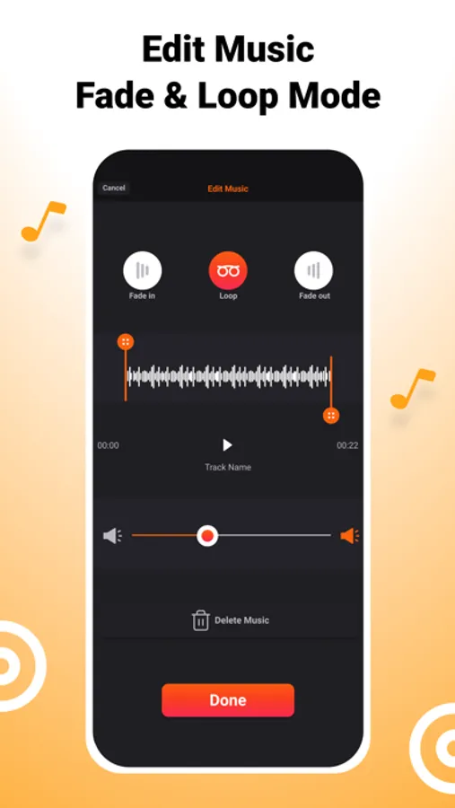# Edit Audio/record: Trim, Fade-in, Fade-out & Loop options.