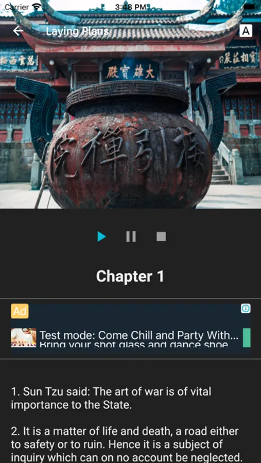 The app is a complete text translated in English and divided into 13 chapters.
