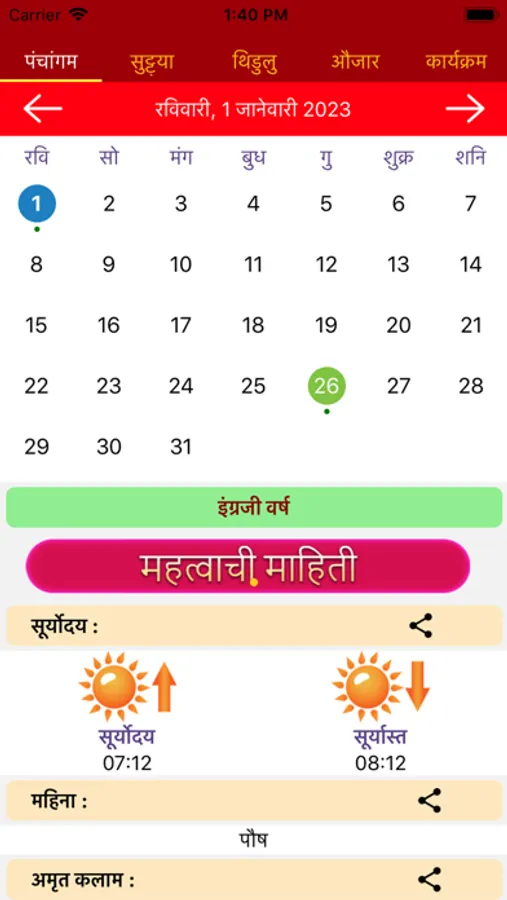 Experience the ultimate calendar app designed specifically for Marathi-speaking people worldwide. Our app provides a seamless and user-friendly interface, ensuring that you stay organised and up-to-date with ease.