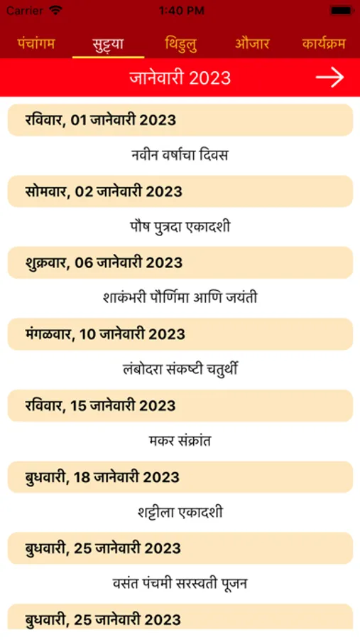 Marathi Calendar(मराठी कॅलेंडर) Panchang App for 2023 is now 2024 also!