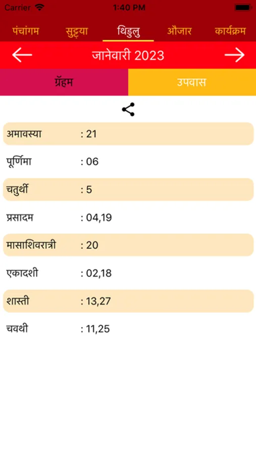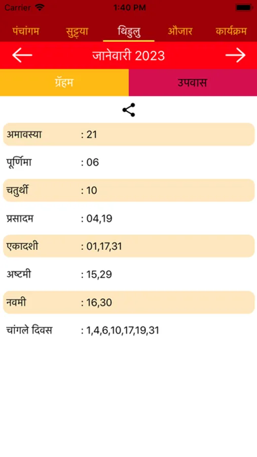 ● Share and Connect: Share your Marathi Panchang with your friends and family, fostering connections and meaningful conversations.