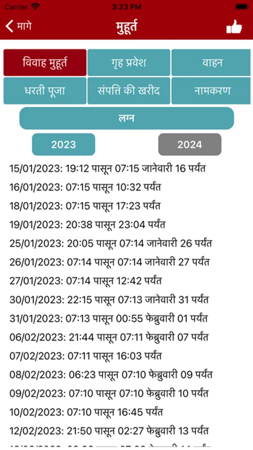 ● Shubh Muhurat Dates: Discover auspicious dates for various events such as marriages(vivah), vehicle purchases, property purchases, and house(Grih Pravesh) warming. Ensure that your important occasions are blessed with good fortune.