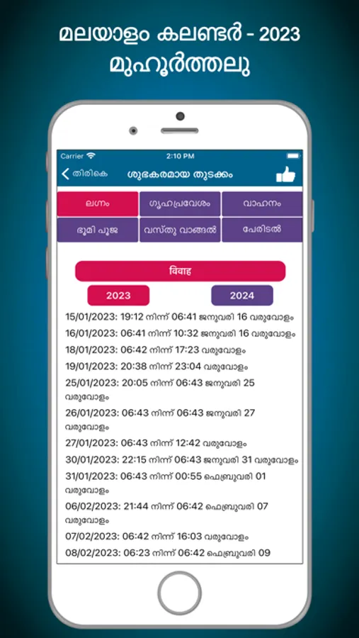 ● Malayalam Calendar 2023 and 2024: Get access to a single app containing the complete calendar for both years, ensuring you never miss important dates and events.