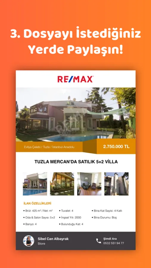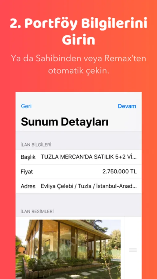 Sahininden'den ilan numarası ile veya Remax portföy numarası ile ilan bilgilerini otomatik çekin, saniyeler içinde sunum dosyası hazırlayarak müşterilerinizi etkileyin.
