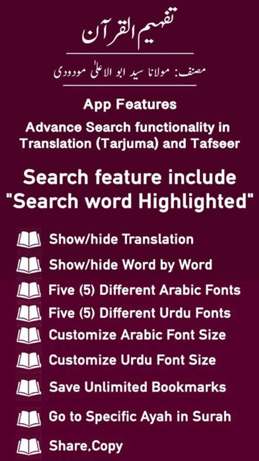 The Most Popular Features of tafheem ul Quran is holy quran mp3 And quran urdu translation in App.you can also Learn koran Word by Word translation