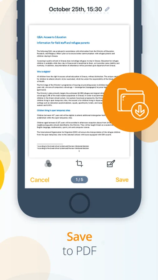 Anyscan turns your camera into a powerful scanner. Simply point your camera at a document, and Anyscan will detect its boundaries, take a photo, and convert it into a scan.