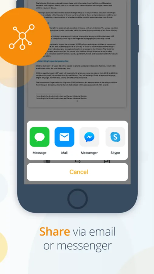 You can change filters and add a signature before sending a multi-page PDF document via email or a messenger.