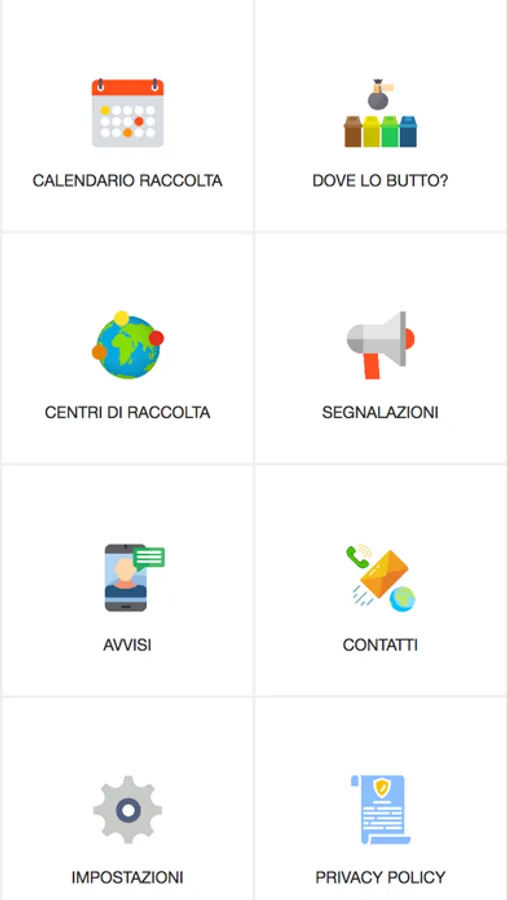 1. Il Calendario della raccolta porta a porta con tutti i mesi e giorni dell'anno cliccabili per mostrare facilmente la tipologia di rifiuto che verrà raccolto specificatamente per ogni comune;