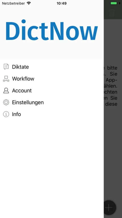With the DictNow App, you can access your individual DictNow templates from your iPhone at any time and add additional information such as work tasks, images, etc. to them. This guarantees a media-break-free assignment to your office network at all times. The dictation can also be speech-recognized on your server in your office and the text is immediately available to your secretary for further processing. Thanks to the latest recording technology, dictations are recorded with excellent sound quality. These can then be sent securely to your secretary for further processing via an encrypted connection. The dictations are now directly embedded in your DictNow workflow.