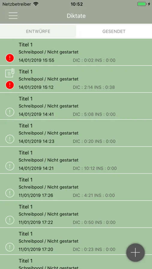 • View the dictation list including the processing status of the sent dictations.