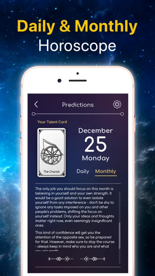 Tarot Time App is your personal adviser in the world of Tarot numerology on your device. To use this app you need just to enter date and year of your birth. For the first, it gives you three personal tarot cards - three key arcans - with personal and actionable advice. Also, you can get your daily and monthly predictions for love, family, health, career, and finance. Download Tarot Time App to learn what are your key Tarot arcana and how they affect your personality. Get your reading and have a nice day!