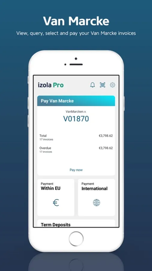 • View, select, query and pay your Van Marcke invoices.