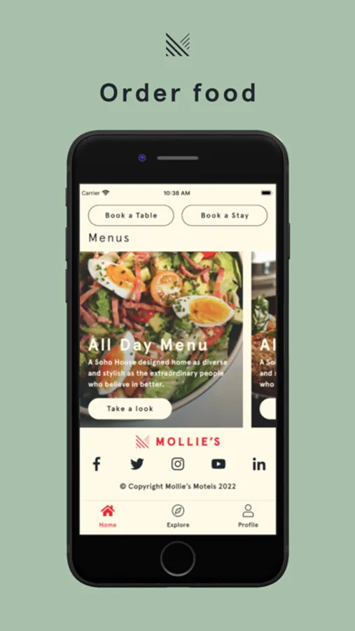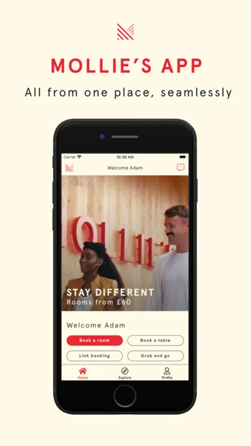 Download the Mollie’s App for an entirely digital experience. Book, see and manage your stay and Diner reservations anytime, check-in when it’s right for you and chat to our friendly team 24/7. EV drivers park up, plug in and press to start charging – conscience eased. Access your room with our digital key, control and cast all your favourite TV and Netflix whilst ordering food and checking out our staycation guides. Breakfast made easier, store your prepaid breakfast for you and the family in your Wallet and redeem in our Diner. All this from one place, seamlessly.