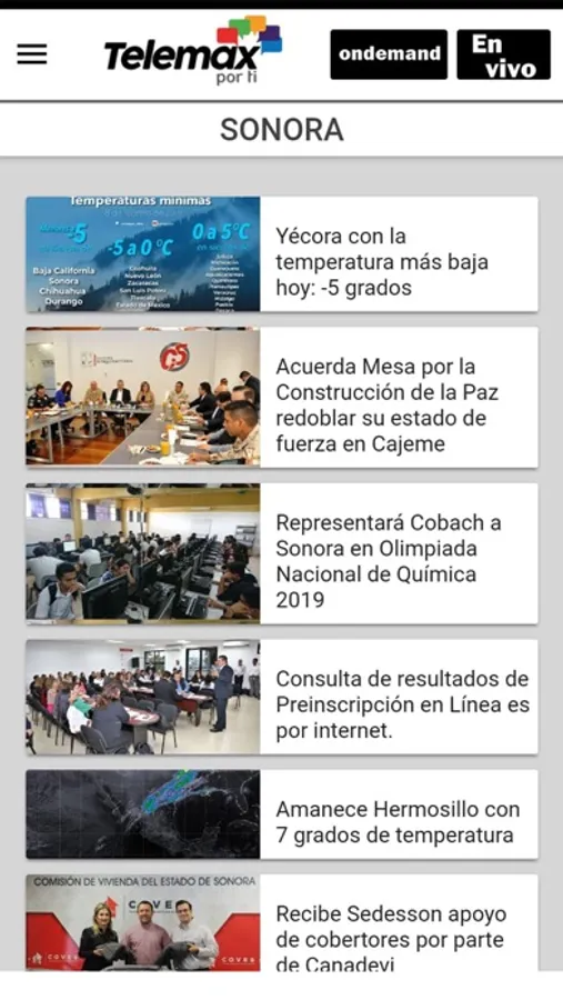 Aplicación Oficial de Telemax Sonora, contiene Sección Ondemand Noticias y Televisión en Vivo