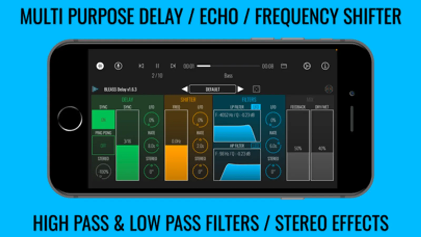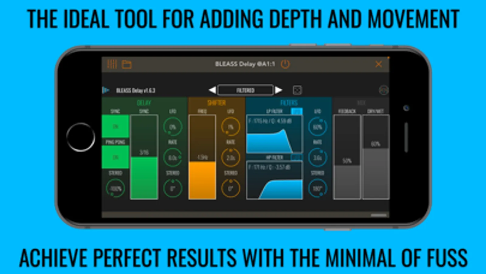 Echoes are just the starting point for BLEASS Delay. The integrated frequency shifter and dual filter allow deep control over the character and sound of the generated repeats, allowing you to achieve with one plugin sound effects that may otherwise require a complete plugin stack and complex routing.