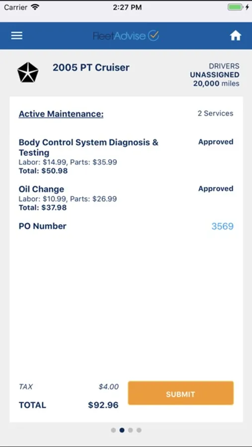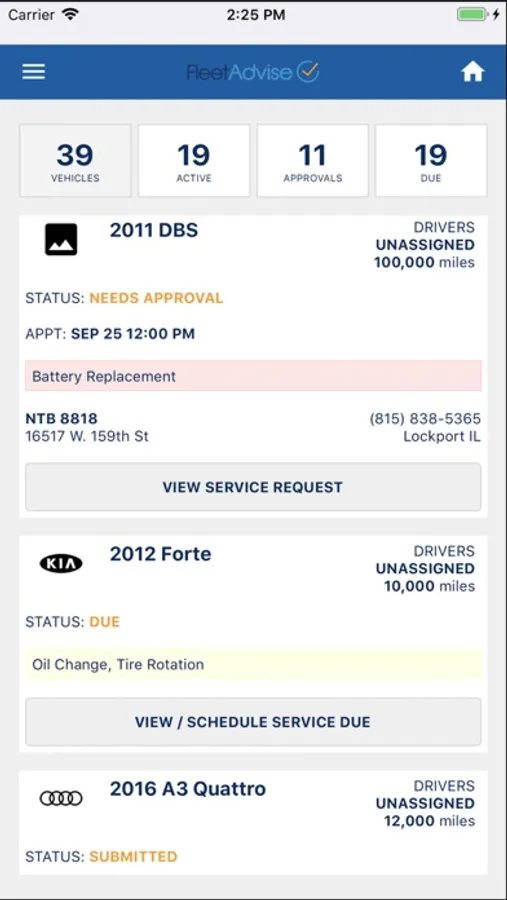 FleetAdvise allows businesses to manage maintenance of their company vehicles and track service history.