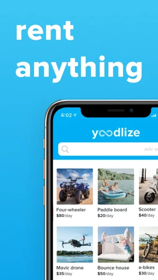 Yoodlize is the peer-to-peer app that lets you rent anything from anyone and rent out your own stuff too. Browse a variety of listings in your area like paddle boards, bounce houses, e-bikes, trailers, and just about anything else. So go on a new adventure, throw the perfect party, or finish your weekend project—all for less.