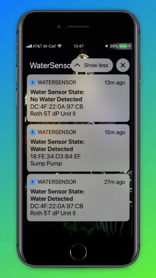 Version 2.0 of the mobile app includes the capability of PUSH notifications when events occur (water detect, sensor offline, etc).