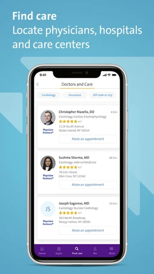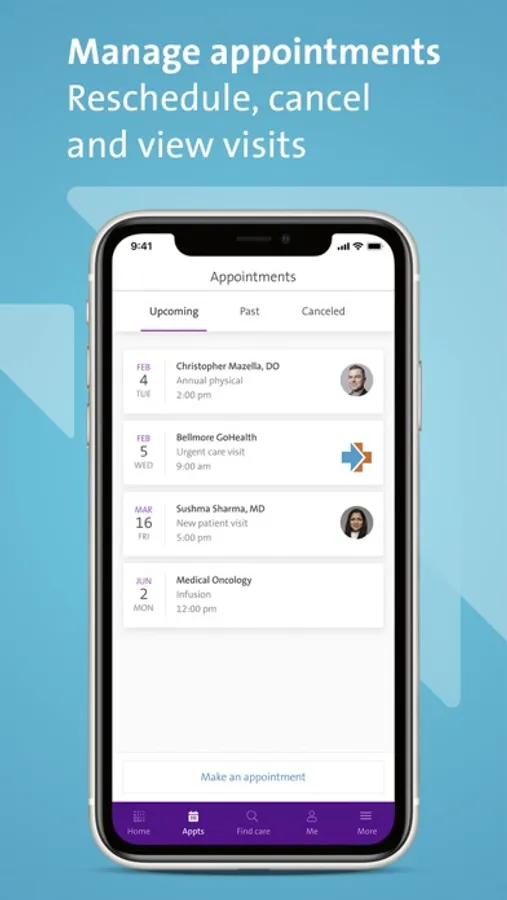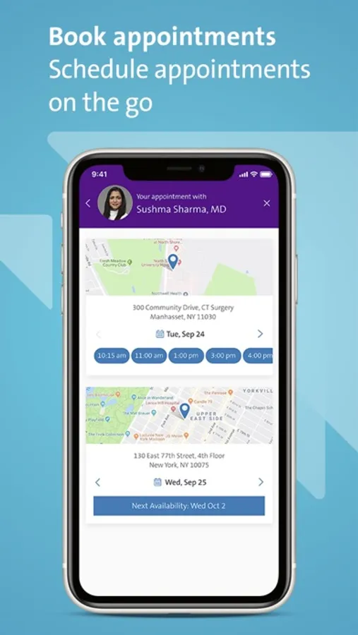 Use our Northwell Health App to easily schedule and manage appointments—as well as pay bills, find doctors, access medical records and get directions. Simply download the app and create an account to get started.