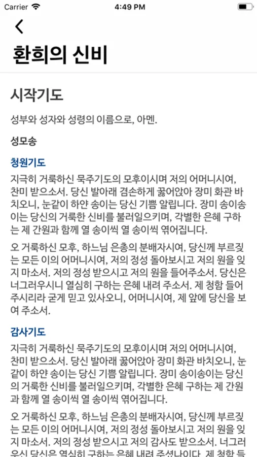 Note that the contents inside the app are all in Korean for now and the source of the contents is from a Korean Rosary reference book called "묵주기도로 드리는 9일 기도".