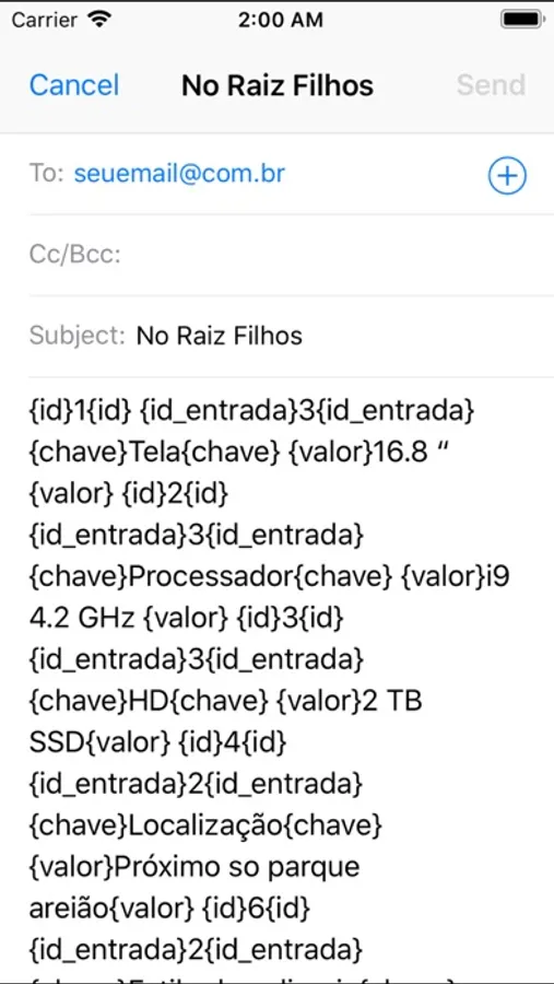 Você pode criar nós raizes (categorias), e dentro das sub-categorias (nós filhos) você pode criar qualquer dado e o valor desejado! Chega de ficar preso a cabeçalhos de planilhas!