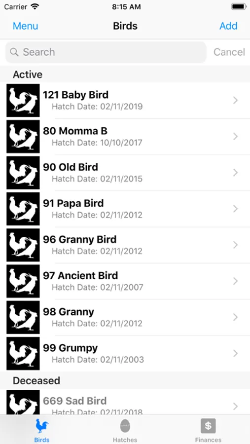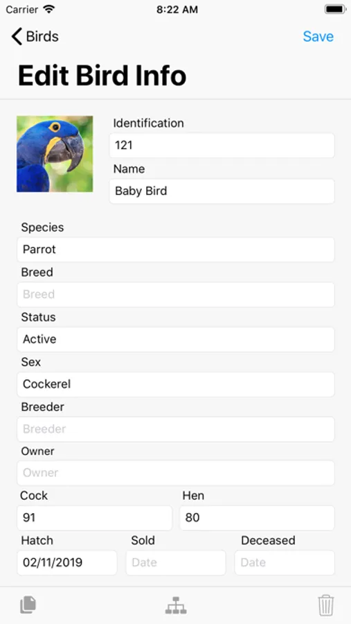With the birdBreeder App you can record and reference your data while holding your birds in front of you, no need to be tied to a computer. The app gives you the ability to manage data on your birds, hatches and finances for multiple species in one app. From the palm of your hand you can record health records by bird, create and record custom data fields by species, record and monitor the outcome of your hatches, document your income and expenses and view analytics on your data. Save time recording data, make better decisions and have your data available when and where you need it. Most importantly back up your data to be recovered if needed.