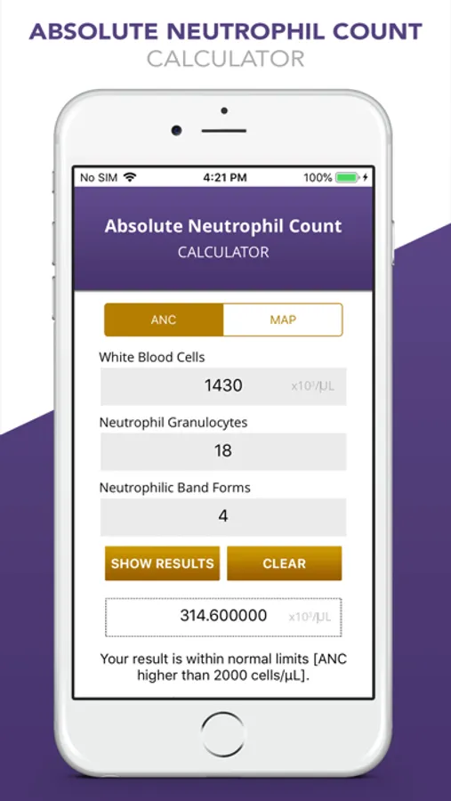 The ANC calculator (Absolute Neutrophil Count calculator) is a tool that enables to estimate the total count of neutrophils which is useful in the assessment of the risk connected with infectious conditions such as sepsis in patients undergoing chemotherapy. It allows for quick diagnosis of neutropenia - a condition when the number of neutrophils in blood is substantially lowered.