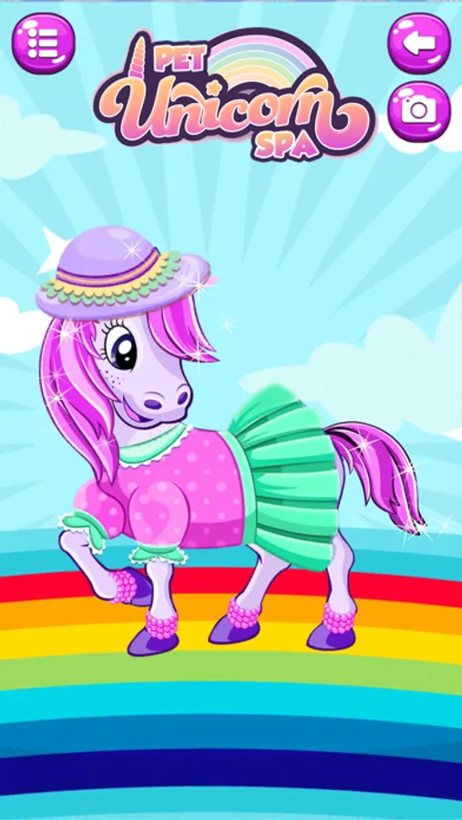 Have you ever wanted to have your very own pet unicorn? Well now you can! You can take care of, and dress them up in pretty outfits. Cut their hair, wash them, and change the background images to create cute pictures to show all of our friends and family!