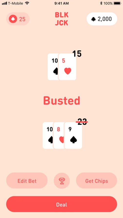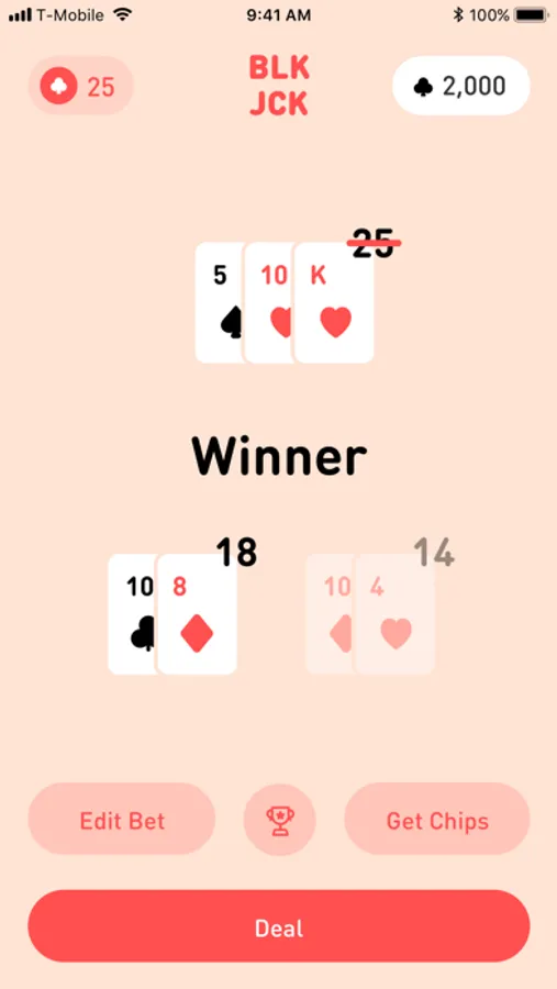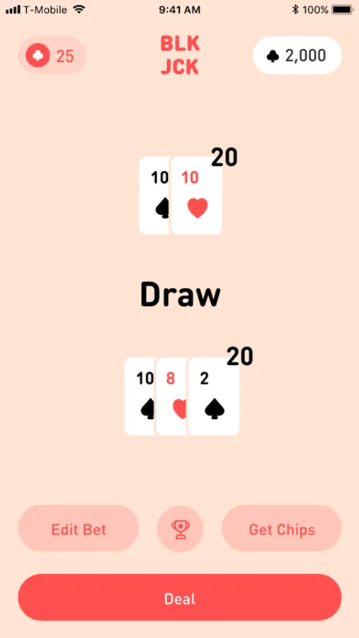 BLKJCK is a clean and simple take on the classic card game. Experience blackjack in its purest form without all the bells and whistles of a casino. The minimal design and subtle animations make this a delight to play.