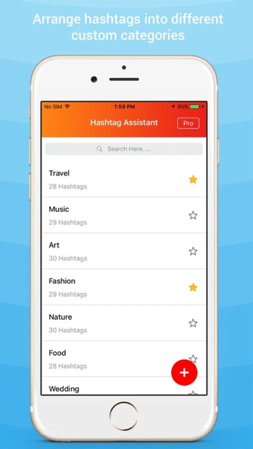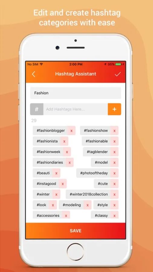 The app comes pre-loaded with a set of hashtags for popular categories. Any number of custom categories can be created to manage hashtags easily.