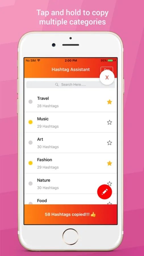 Group your hashtags into separate categories and copy them with just a touch. In a flash.