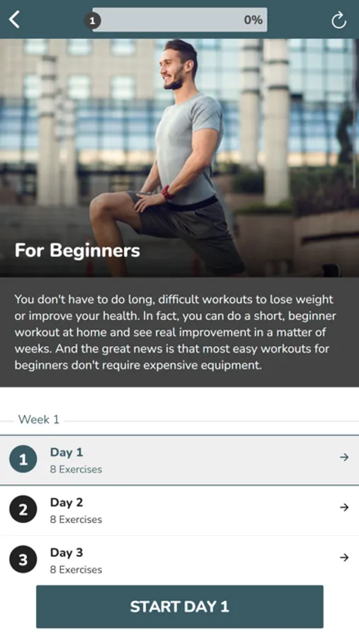Our beginner workouts are designed just for men. It accommodates the unique biomechanical properties of a guy's physique and appeals to the interests that a sports-minded man might prefer. As your fitness level improves, increase both the duration and the frequency of your workouts. You'll find that trying new workouts and adding variety to your routine will help you to stay interested and motivated.