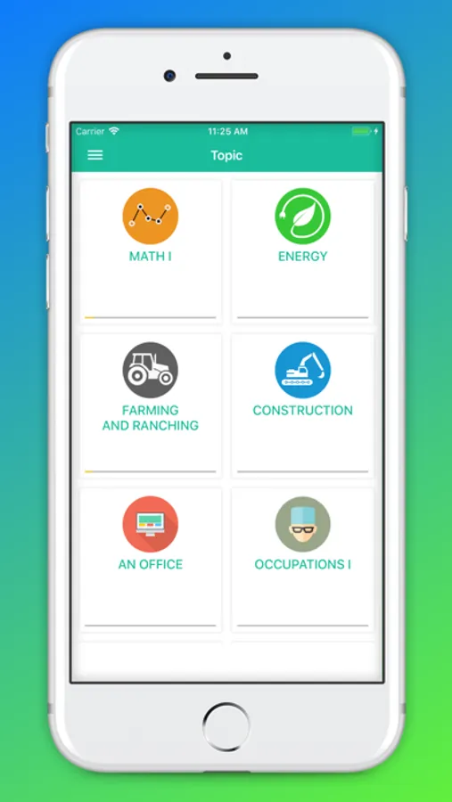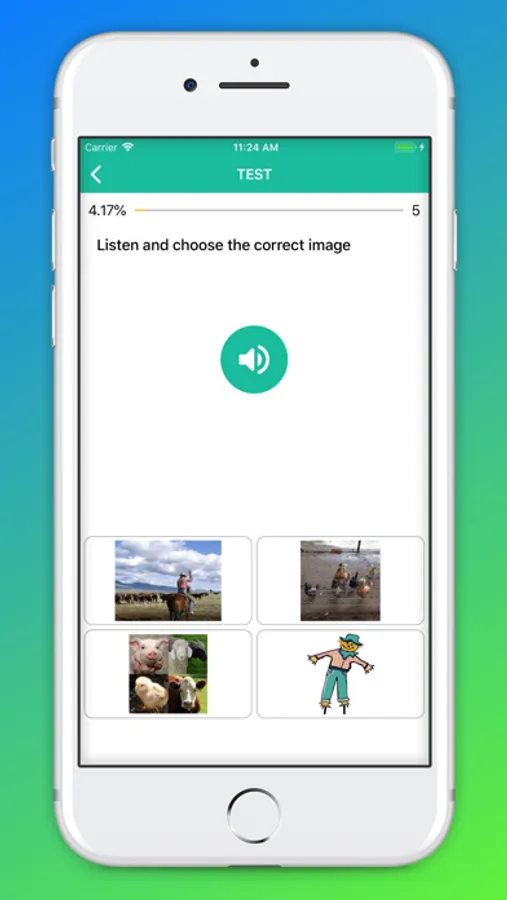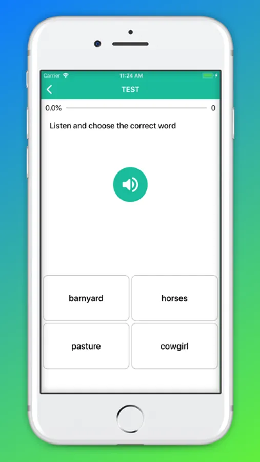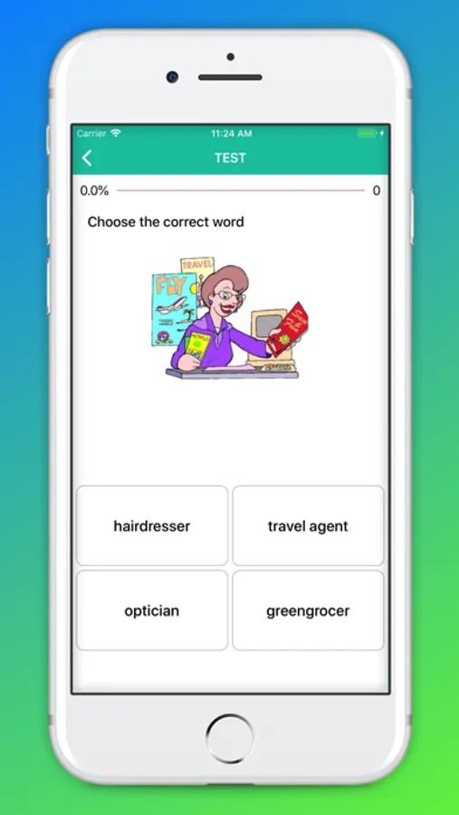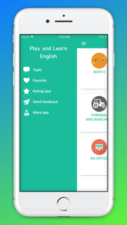 The app's interface is optimized on many different devices, it's simple and extremely easy to use. It contains lots of topics for you to learn and practice: vegetables, fruits, wild animals, pets, house, clothing, colors, transports, body parts, tableware, home appliances, food, toys, school, nature, insects, numbers, geometry, musical instruments, sea life, tools, sports, bathroom, travel, infrastructure, office, miscellaneous.