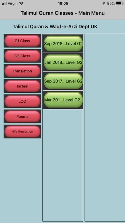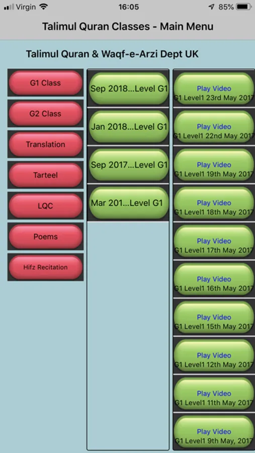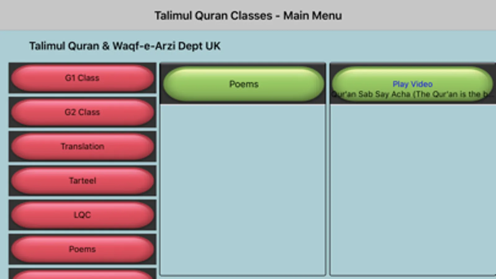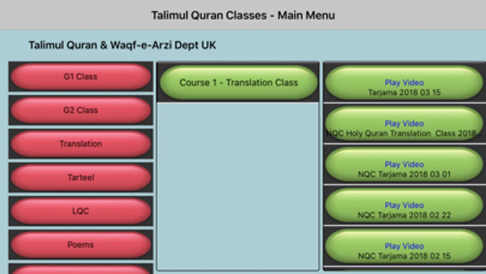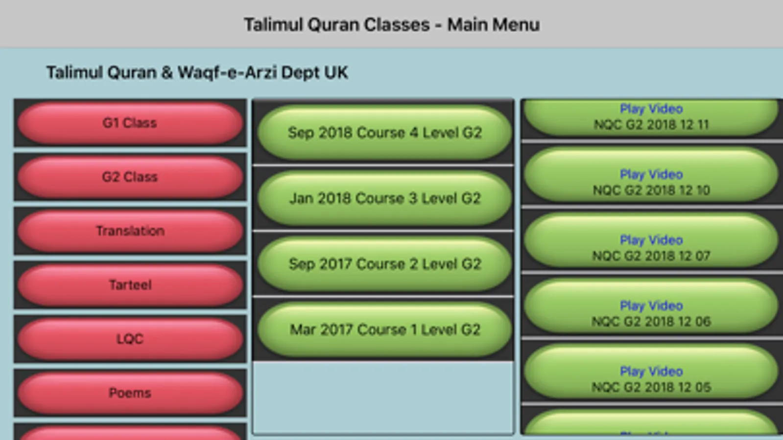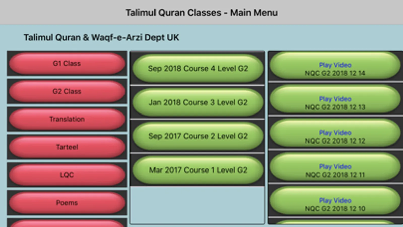 A rich content giving access to recordings of live classes teaching various aspects of the Holy Qur'an. They include, simple recitation of the Holy Quran, in 2 levels, Level G1 and G2 for young children, where the children are taught in simple language the simple reading of the Holy Qur'an. The department of Talimul Quran AMA UK also provides other courses for adults, as well as a resource of many aspects of the Holy Quran.