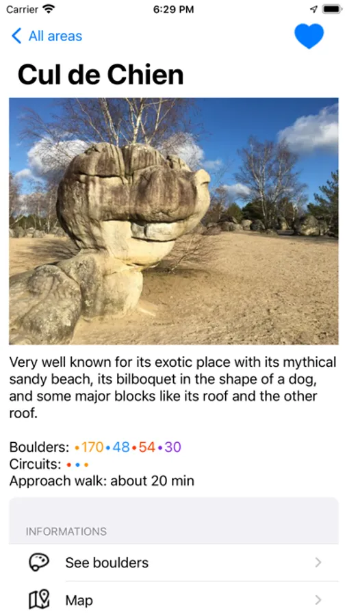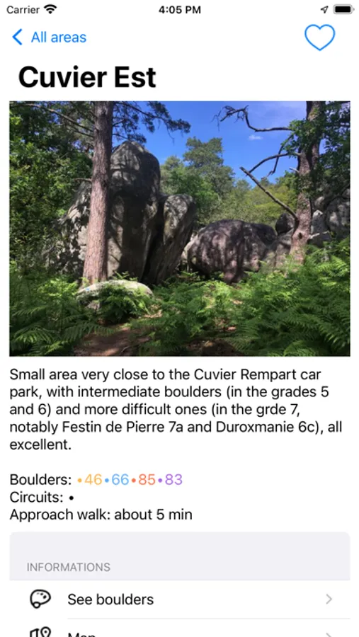 Thanks to Topo Bleau, organise your climbing session: find the area that suits everyone (by type of boulder, by sector, depending on whether you are on foot, by train or by vehicle, between adults or with children...). Each area is accompanied by a detailed description to make the best choice everyday you want to climb.