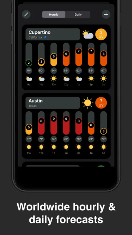 - Worldwide UV forecasts for up to 10 of your favorite places