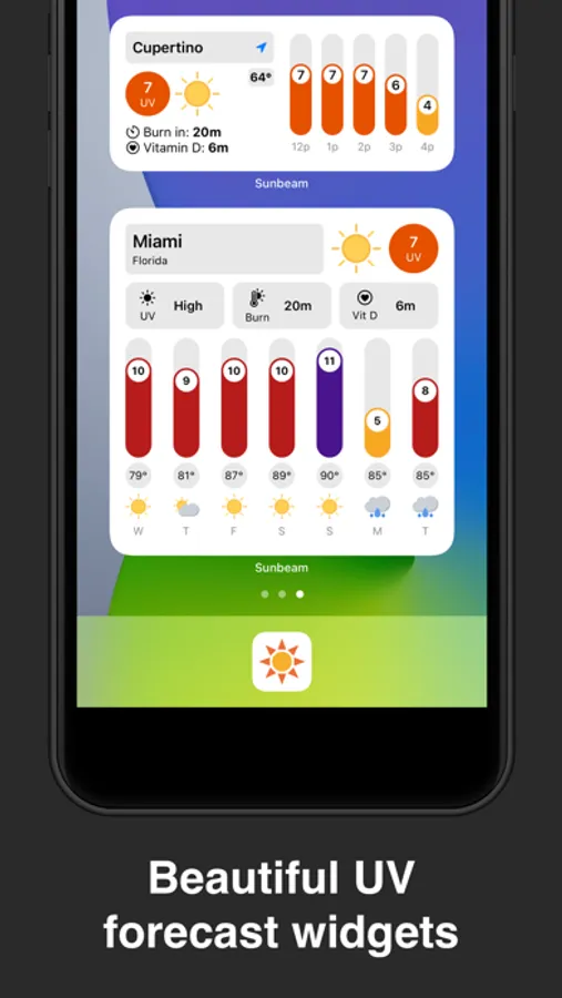 - Beautiful Home Screen and Lock Screen widgets so you can check the latest UV Index at a glance