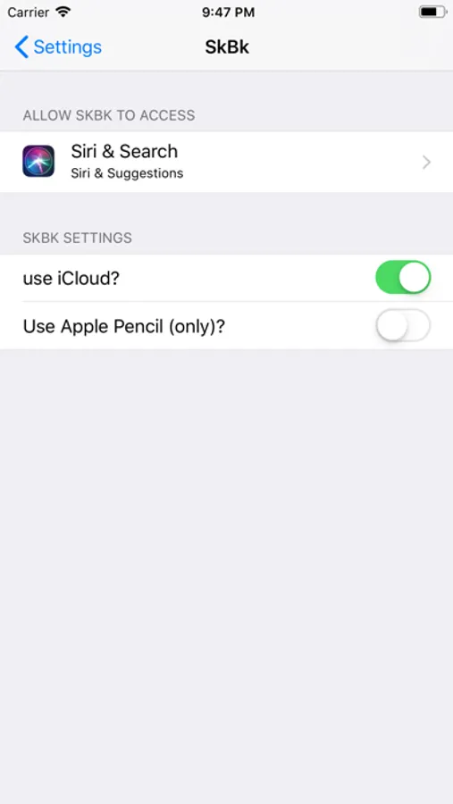Defaults automatically to use iCloud to back up and synchronize your sketch book across devices. This preference can be turned off in the Settings app.