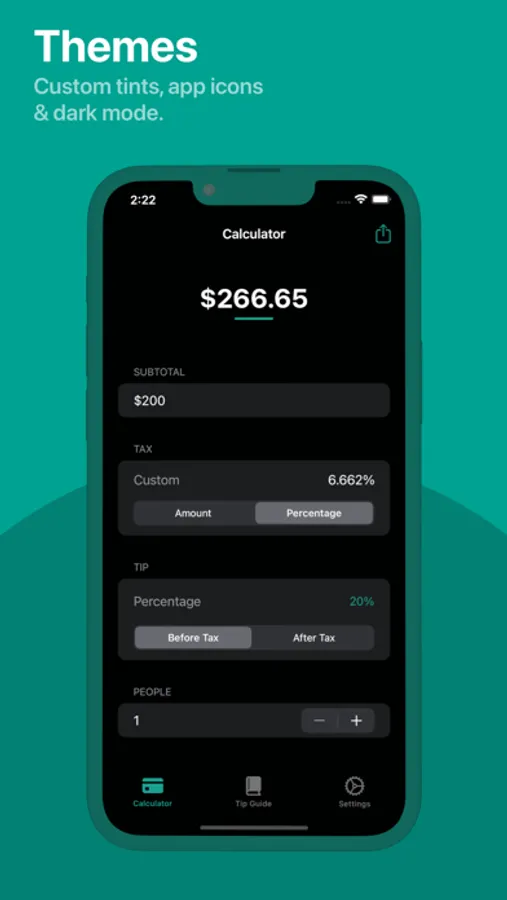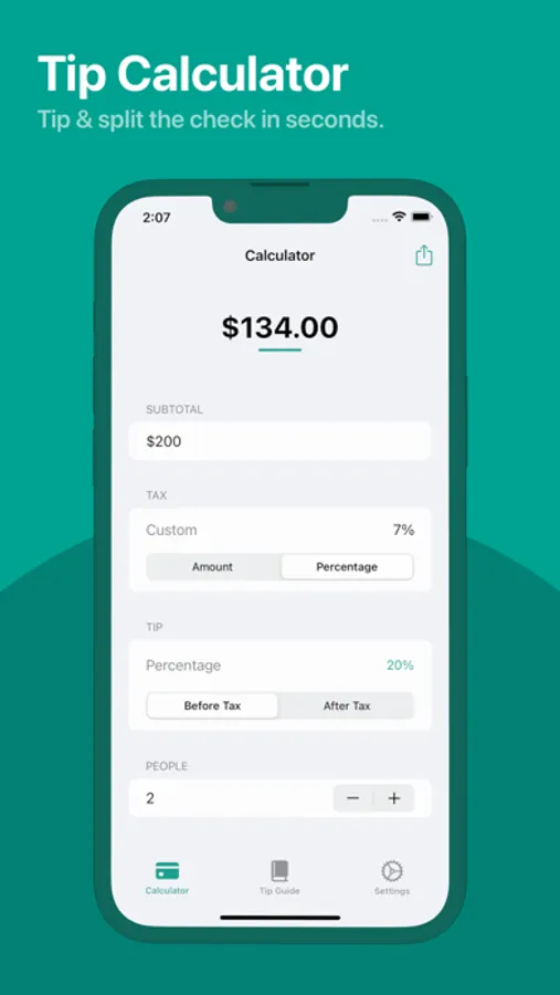 TipCalc is a fast and easy-to-use tip calculator for the iPhone, iPad, Apple Watch and Mac. Quickly calculate your tip, tax, split bills up to 100 people, and share your expenses with others in a matter of seconds. Always know what to tip with the convenient Tip Guide.