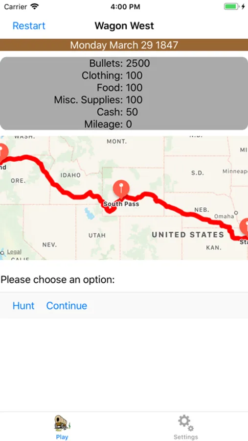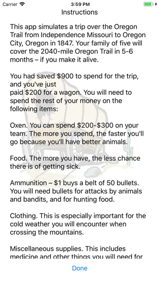 Travel the Oregon Trail in a covered wagon from Independence, Missouri to the Willamette Valley in Oregon. Use your hunting skills to keep your family fed as you brave daily struggles to reach your destination.